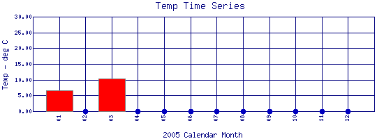Water Temperature Time Series for 2005 Boulder Creek Below Coal Creek |
