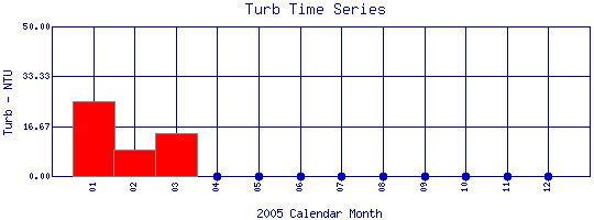 Turbidity Time Series for 2005 Boulder Creek Below Coal Creek |