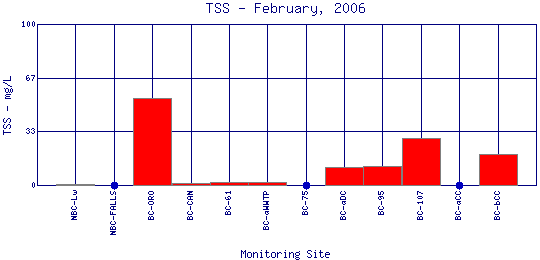 Longitudinal Total Suspended Solids Profiles for February, 2006