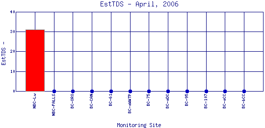 The above map indicates water quality monitoring sites. To view data at a specific site select it from the map with the mouse.