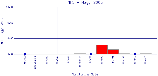 The above map indicates water quality monitoring sites. To view data at a specific site select it from the map with the mouse.