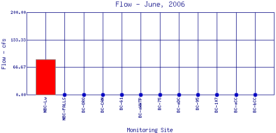 Flow is the volume of water moving past a point in a unit of time. Two things make up flow: the volume of water in the stream, and the velocity of the water moving past a given point. Flow affects the concentration of dissolved oxygen, natural substances, and pollutants in a water body. Flow is measured in units of cubic feet per second (cfs). Peak flows for Boulder Creek in the spring can reach as high as 300-800 cfs and as low as 10-50 cfs in the fall months.