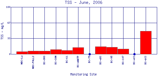 Longitudinal Total Suspended Solids Profiles for June, 2006