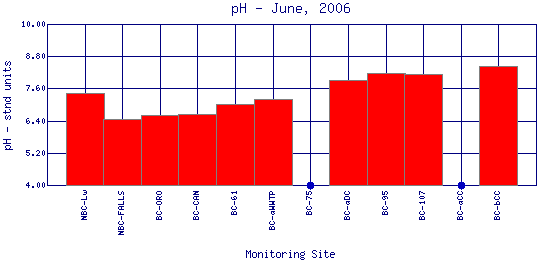 The above map indicates water quality monitoring sites. To view data at a specific site select it from the map with the mouse.