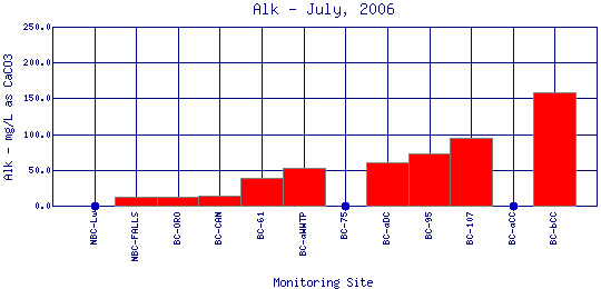 Alkalinity refers to how well a water body can neutralize acids. Alkalinity measures the amount of alkaline compounds in water, such as carbonates (CO3 2-), bicarbonates (HCO3 -), and hydroxides (OH-). These compounds are natural buffers that can remove excess hydrogen ions that have been added from sources such as acid rain or acid mine drainage. Alkalinity mitigates or relieves metals toxicity by using available HCO3 - and CO3 2- to take metals out of solution, thus making it unavailable to fish. Alkalinity is affected by the geology of the watershed; watersheds containing limestone will have a higher alkalinity than watersheds where granite is predominant. The Boulder Creek Watershed is composed primarily of granite rocks, thus the water has a lower alkalinity content.