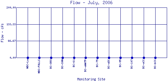 The above map indicates water quality monitoring sites. To view data at a specific site select it from the map with the mouse.