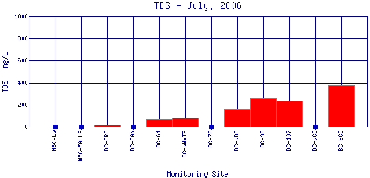 Longitudinal Total Dissolved Solids Profiles for July, 2006