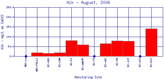 Alkalinity refers to how well a water body can neutralize acids. Alkalinity measures the amount of alkaline compounds in water, such as carbonates (CO3 2-), bicarbonates (HCO3 -), and hydroxides (OH-). These compounds are natural buffers that can remove excess hydrogen ions that have been added from sources such as acid rain or acid mine drainage. Alkalinity mitigates or relieves metals toxicity by using available HCO3 - and CO3 2- to take metals out of solution, thus making it unavailable to fish. Alkalinity is affected by the geology of the watershed; watersheds containing limestone will have a higher alkalinity than watersheds where granite is predominant. The Boulder Creek Watershed is composed primarily of granite rocks, thus the water has a lower alkalinity content.