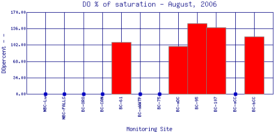 Longitudinal DO Percent of Saturation Profiles for August, 2006