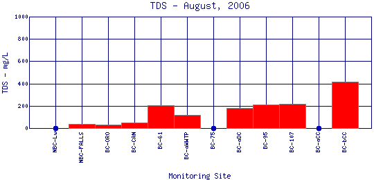 Longitudinal Total Dissolved Solids Profiles for August, 2006