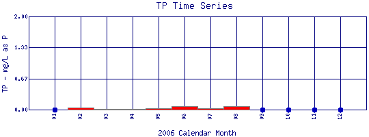 Select on the parameter name to view all Total Phosphate time series plots on the basin map. Select on the table date to view stream Total Phosphate profiles observed on that date. Select here to view all parameters at this site.