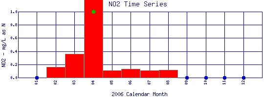 Select on the parameter name to view all Nitrite time series plots on the basin map. Select on the table date to view stream Nitrite profiles observed on that date. Select here to view all parameters at this site.