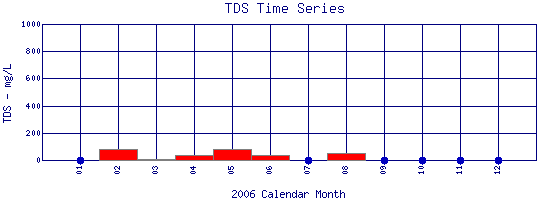 Select on the parameter name to view all Total Dissolved Solids time series plots on the basin map. Select on the table date to view stream Total Dissolved Solids profiles observed on that date. Select here to view all parameters at this site.