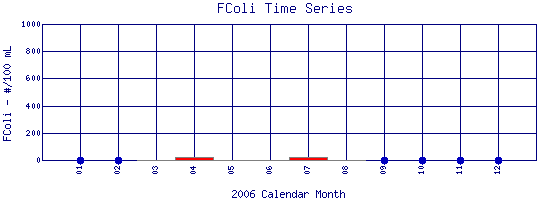 Select on the parameter name to view all Fecal Coliform time series plots on the basin map. Select on the table date to view stream Fecal Coliform profiles observed on that date. Select here to view all parameters at this site.