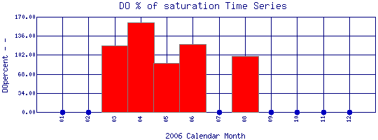 Select on the parameter name to view all DO Percent of Saturation time series plots on the basin map. Select on the table date to view stream DO Percent of Saturation profiles observed on that date. Select here to view all parameters at this site.