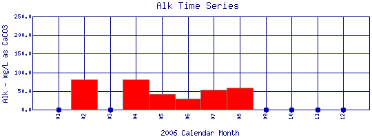 refers to how well a water body can neutralize acids. Alkalinity measures the amount of alkaline compounds in water, such as carbonates (CO3 2-), bicarbonates (HCO3 -), and hydroxides (OH-). These compounds are natural buffers that can remove excess hydrogen ions that have been added from sources such as acid rain or acid mine drainage. Alkalinity mitigates or relieves metals toxicity by using available HCO3 - and CO3 2- to take metals out of solution, thus making it unavailable to fish. Alkalinity is affected by the geology of the watershed; watersheds containing limestone will have a higher alkalinity than watersheds where granite is predominant. The Boulder Creek Watershed is composed primarily of granite rocks, thus the water has a lower alkalinity content. |