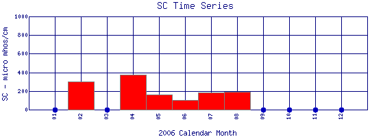Specific Conductance Time Series for 2006 Boulder Creek above WW Plant |