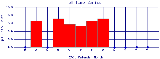 Select on the parameter name to view all pH time series plots on the basin map. Select on the table date to view stream pH profiles observed on that date. Select here to view all parameters at this site.