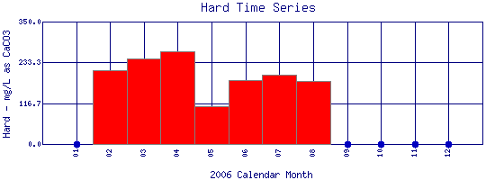 Select on the parameter name to view all Total Hardness time series plots on the basin map. Select on the table date to view stream Total Hardness profiles observed on that date. Select here to view all parameters at this site.
