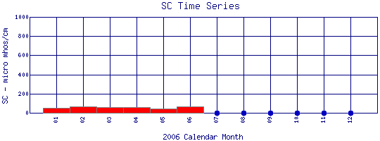 Select on the parameter name to view all Specific Conductance time series plots on the basin map. Select on the table date to view stream Specific Conductance profiles observed on that date. Select here to view all parameters at this site.