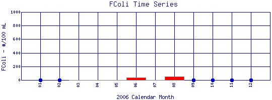 Select on the parameter name to view all Fecal Coliform time series plots on the basin map. Select on the table date to view stream Fecal Coliform profiles observed on that date. Select here to view all parameters at this site.