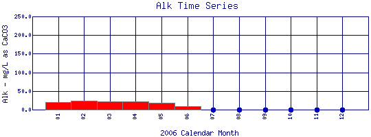 Select on the parameter name to view all Total Alkalinity time series plots on the basin map. Select on the table date to view stream Total Alkalinity profiles observed on that date. Select here to view all parameters at this site.