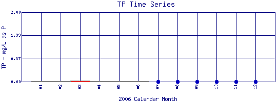 Select on the parameter name to view all Total Phosphate time series plots on the basin map. Select on the table date to view stream Total Phosphate profiles observed on that date. Select here to view all parameters at this site.