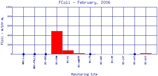 Longitudinal Fecal Coliform Profiles for February, 2006