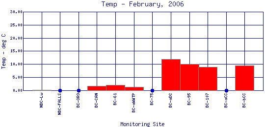 The above map indicates water quality monitoring sites. To view data at a specific site select it from the map with the mouse.