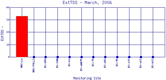 The above map indicates water quality monitoring sites. To view data at a specific site select it from the map with the mouse.