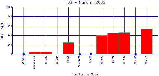 Longitudinal Total Dissolved Solids Profiles for March, 2006