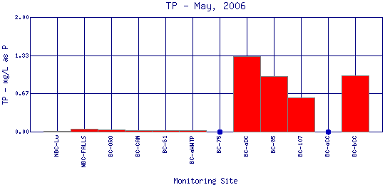 The above map indicates water quality monitoring sites. To view data at a specific site select it from the map with the mouse.