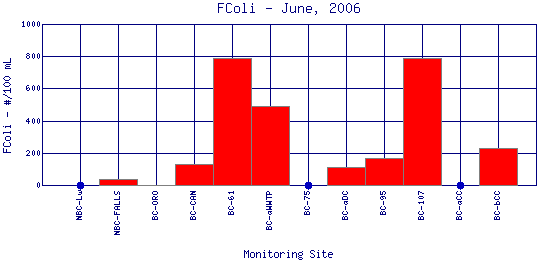 Longitudinal Fecal Coliform Profiles for June, 2006