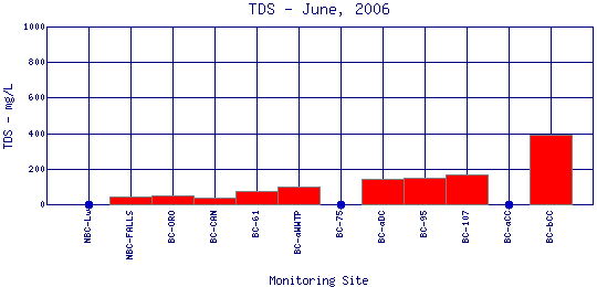 Longitudinal Total Dissolved Solids Profiles for June, 2006