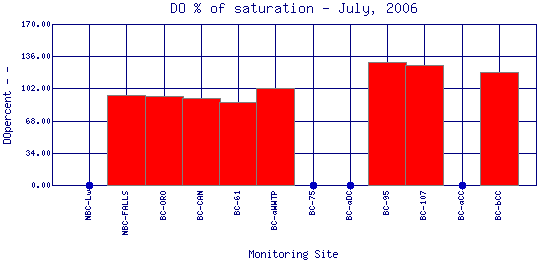 Longitudinal DO Percent of Saturation Profiles for July, 2006