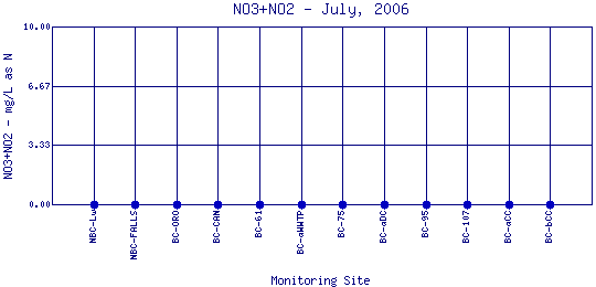 Longitudinal Nitrate + Nitrite Profiles for July, 2006