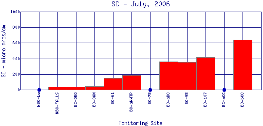 Longitudinal Specific Conductance Profiles for July, 2006
