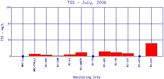 Longitudinal Total Suspended Solids Profiles for July, 2006