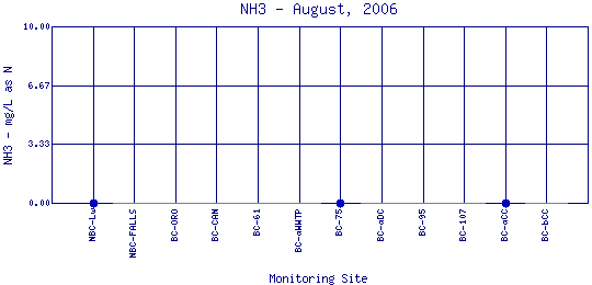 The above map indicates water quality monitoring sites. To view data at a specific site select it from the map with the mouse.