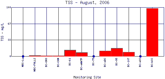 Longitudinal Total Suspended Solids Profiles for August, 2006