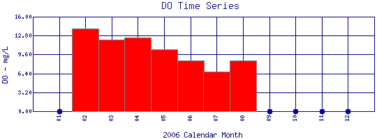 Dissolved Oxygen Time Series for 2006 Boulder Creek at 61st St. |
