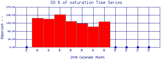 Select on the parameter name to view all DO Percent of Saturation time series plots on the basin map. Select on the table date to view stream DO Percent of Saturation profiles observed on that date. Select here to view all parameters at this site.