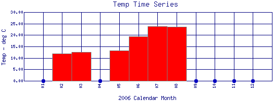 Water Temperature Time Series for 2006 Boulder Creek above Dry Creek |