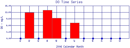 Select on the parameter name to view all Dissolved Oxygen time series plots on the basin map. Select on the table date to view stream Dissolved Oxygen profiles observed on that date. Select here to view all parameters at this site.