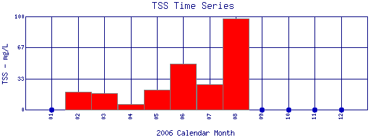 Select on the parameter name to view all Total Suspended Solids time series plots on the basin map. Select on the table date to view stream Total Suspended Solids profiles observed on that date. Select here to view all parameters at this site.