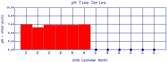 Select on the parameter name to view all pH time series plots on the basin map. Select on the table date to view stream pH profiles observed on that date. Select here to view all parameters at this site.