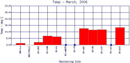 The above map indicates water quality monitoring sites. To view data at a specific site select it from the map with the mouse.