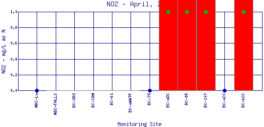 The above map indicates water quality monitoring sites. To view data at a specific site select it from the map with the mouse.
