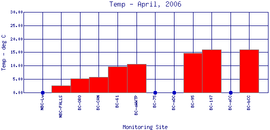 Longitudinal Water Temperature Profiles for April, 2006