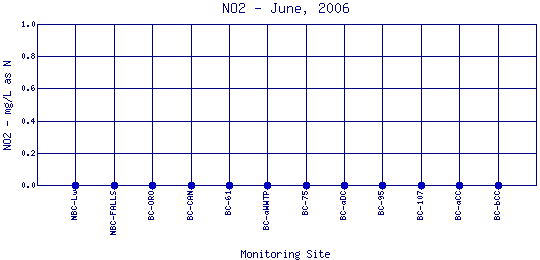 The above map indicates water quality monitoring sites. To view data at a specific site select it from the map with the mouse.